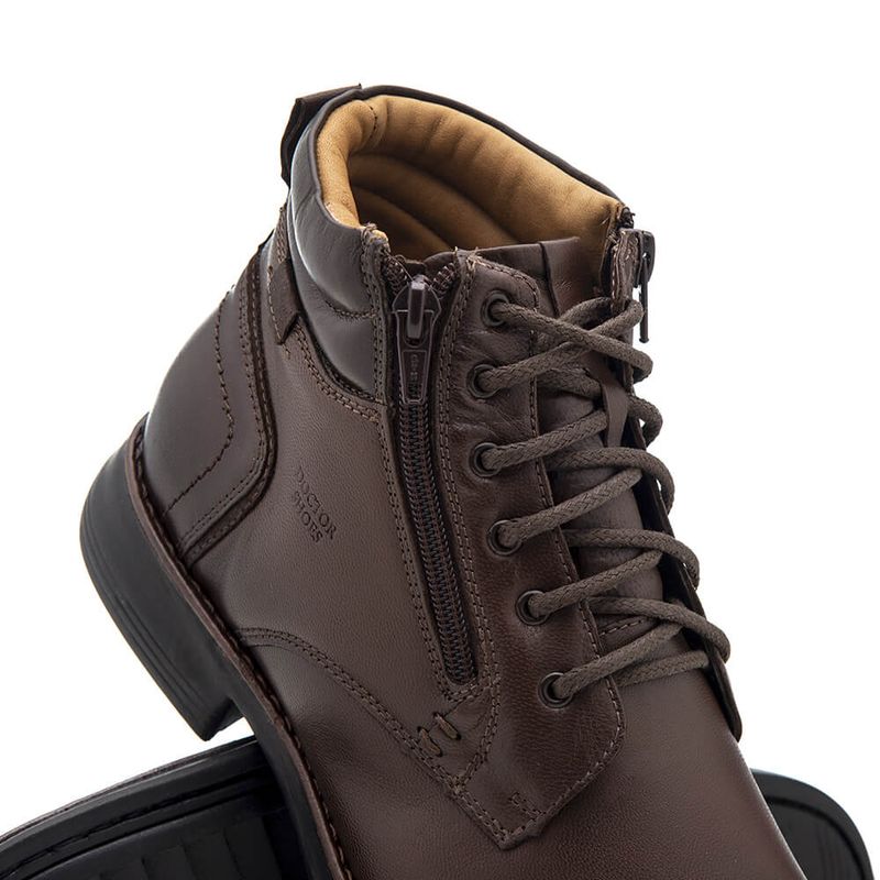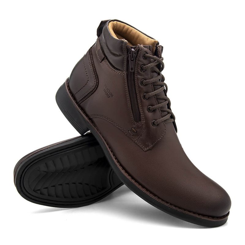 O modelo conta com fechamento em cadarço, que permite um ajuste perfeito, aliado a zíperes laterais que facilitam o calce e trazem praticidade à rotina.
