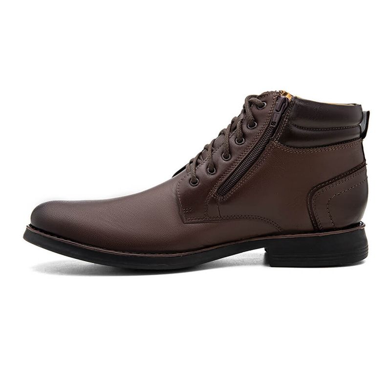 O solado em borracha oferece maior aderência e segurança ao caminhar, além de complementar o visual robusto e urbano da peça.