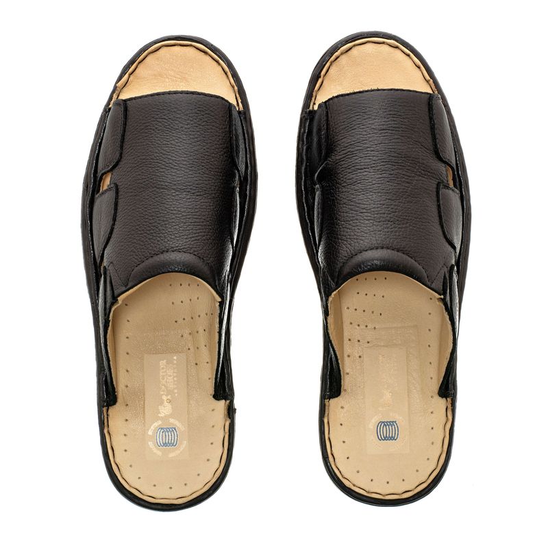 Chinelo Masculino em Couro Amaciado da Doctor Shoes. Produzido em couro floater e costurado à mão, ele traz classe para os looks informais.